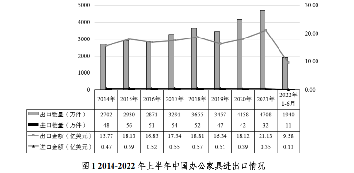 2022年上半年中国办公家具进出口现状分析