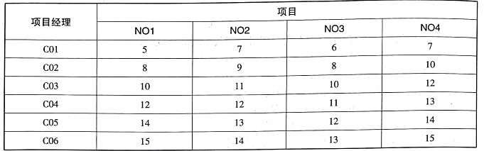 有6名项目经理,编号是C01—C06,他们的能力不同。现有4个项目需要指派给其中4人单独负责,即每人只负责一个项目,一个