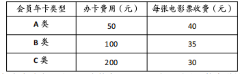 .一家电影院的电影票收费标准为 50 元/次,若购买会员年卡,可享受如下优惠: