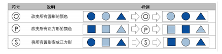 单选题 一组图形经过特殊的变形输出另一组图形,变换过程用下列符号表示。
