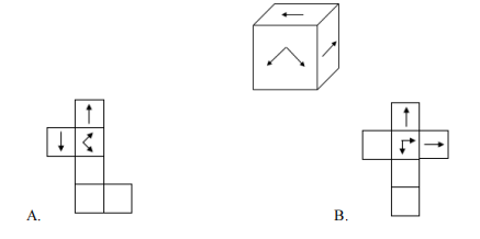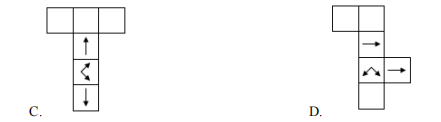 单选题 在选项的四个图形中,只有一个是由上面的纸板折叠而成的。你认为正确的选项是( )。