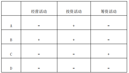 (2021 年建设银行秋)当企业处于衰退期,其主营业务现金流入不敷出,企业为了还债不得不收回投资以弥补现金流的不足,这类企业的经营活动已经发出危险信号,如果投资现金流入是投资资产的变现,说明企业很可能已经处于破产边缘,应高度警惕。以下哪种现金流组合,最符合上述情况?( )