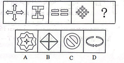 单选题 请从所给的选项中,选择唯一的一项填在问号处,使之呈现一定的规律性。 ( )