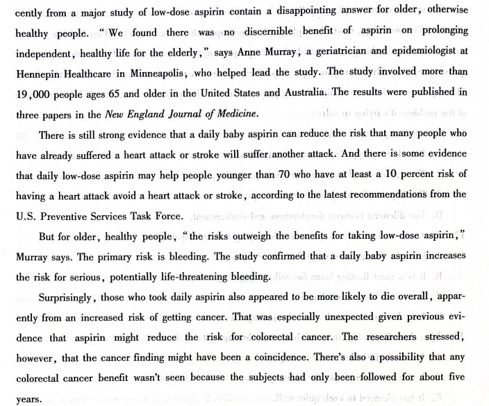 不定项选择题 What isEvan's atiude toward elderly people taking asp