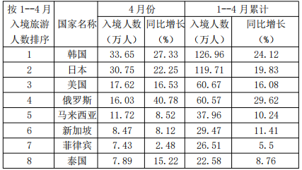 2009 年 4 月我国入境旅游的第三大客源市场是: