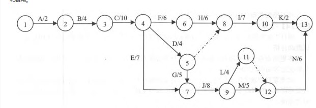 压缩到这里的时候,路径ABCEJLN、ABCEJMN和ABCDGJLN都是已经小于或等于38了的,所以这个时候只要保证关键路径ABCDGJMN还可压缩一天即可, 由于G和M缩短1天的成本都是150元,所以在这两个活动中任意压缩一天即可。 增加成本150元。本题答案为:(3)J,(4)2,(5)N,(6)3,(7)G或M,(8)1。
