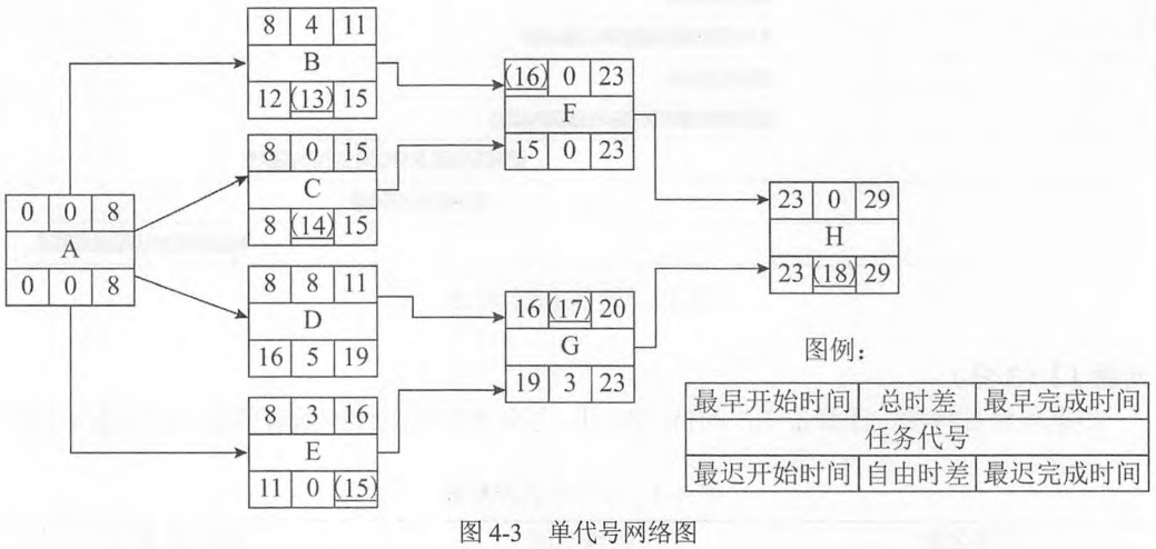 请根据项目计划甘特图,将该项目的单代号网络图即图4-3补充完整。