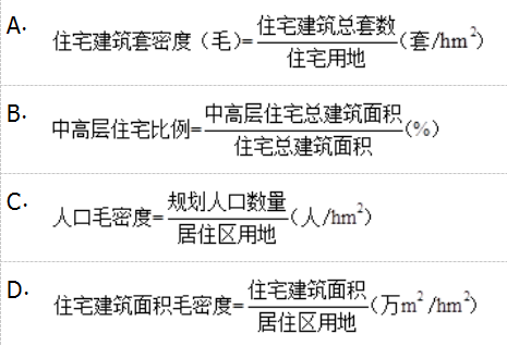 单选题 下列关于城市居住区综合技术经济指标的公式中,错误的是( )。(2007年真题)