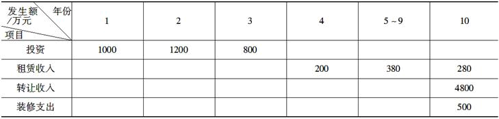 不定项选择题 某房地产投资项目的现金流量如表所示(假设投资、租赁收入、装修支出各自发生在相应期初,转让收入发生在相应期末