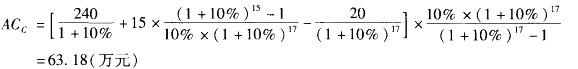 若基准折现率为10%,且已知A方案寿命期年费用为72.40万元;B方案寿命期年费用为69. 93万元。试计算C方案寿命期年费用,并利用年费用指标对三个投标方案的优劣