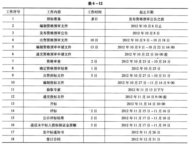某工程项目依法必须招标,招标人编制的招标日程见表6-12。