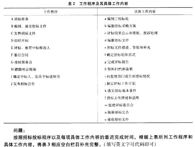 分析题 某工程建设项目施工公开招标,我国《标准施工招标文件》(2007年版),采用综合评价法评标,并设置标底。有关工作程序及其具体工作内容见表2。