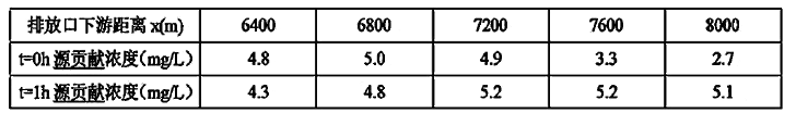 某重大危险源泄露事故的风险评价,将该事故排放源概化为间隔1h 的等强度瞬时点源(t=0,1h)排入河流中。采用瞬时点源河