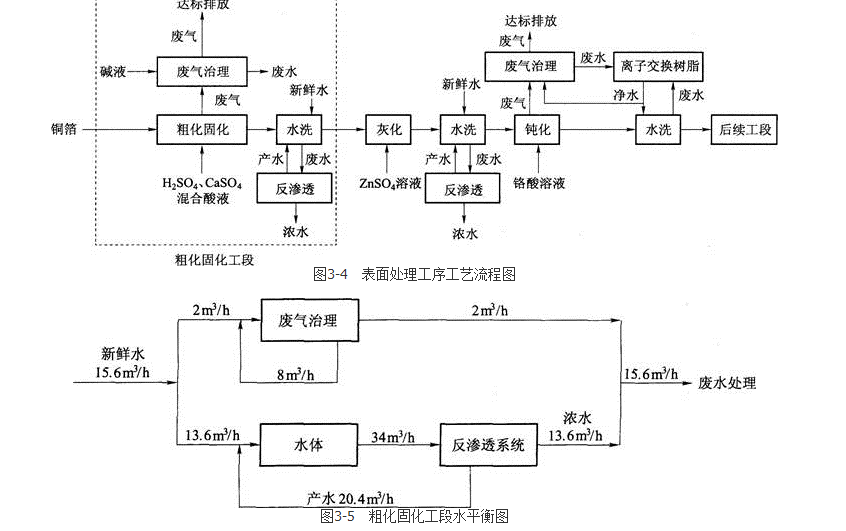 ①表面处理工序的反渗透浓水可返回到灰化工序重新使用,或者采用电解、气浮、过滤、离子交换等方式进行处理;