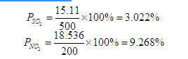 选择SO2、NOx为废气主要污染物,计算其最大地面浓度占标率Pi: