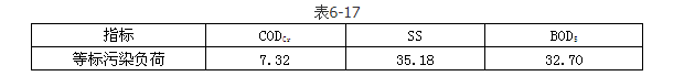 6.评价公式为:Pi=Ci/Coi×Q×10-6,则排污口各污染物的等标污染负荷如表6-17所示。