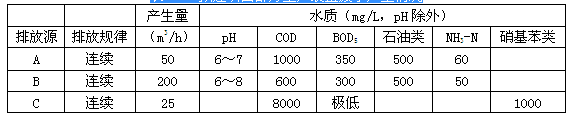 (2)优化方案为:A、B两股废水混合后进行除油处理和生化处理,C股废水应预先采用厌氧法或氧化法,提高其可生化性,去除里面的硝基苯然后与A、B两股废水混合进行生化处理。