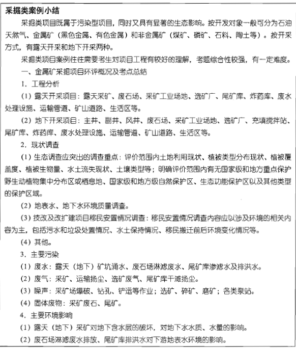 环境风险评价是环境影响评价的重要内容。在做任何一个案例题目时,均应考虑其是否有环境风险因素。如果有,就需要深入地进行分析评价。不仅只有污染型项目需进行环境风险评价,交通运输项目也涉及环境风险评价,如公路、铁路、石油天然气输送管道等;此外,采掘类项目也涉及环境风险评价,如石油开采、天然气开采、煤层气开采、煤矿开采等。 对于油田开发项目而言,环境事故主要发生于钻井(井下作业)、原油集输管线以及站场等工艺环节,潜在危险因素主要有腐蚀、误操作、设备缺陷、设计问题,涉及的主要事故类型为井喷事故和管线破裂导致的泄漏。