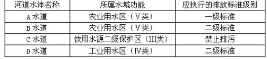 表13-3 验收水体的水域功能和相应执行的排放标准级别