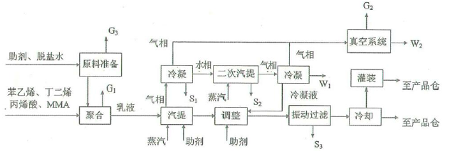 分),苯乙烯和丁二烯2 条原料输送管线(0.5 分)。