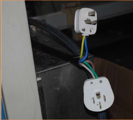 如图所示,图中的5股护套线应用于输送三相五线制电源,采用二个插头(一个是三孔、一个四孔)的方法输送,存在电流不匹配、漏插