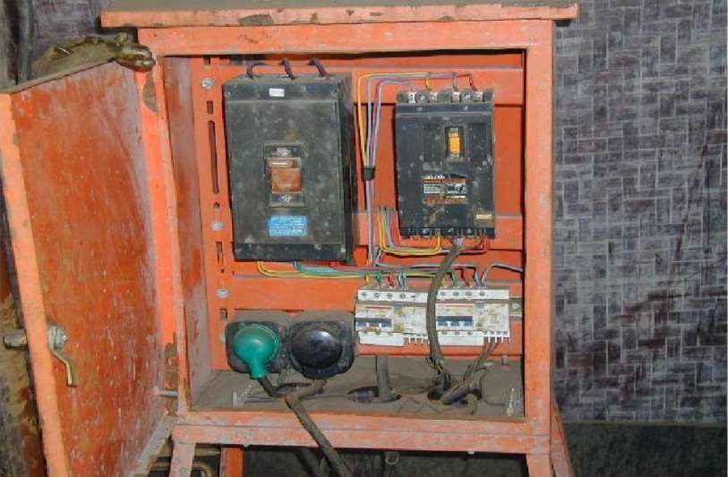 如图所示,图中的隐患包括一闸多机、带电体明露等。()