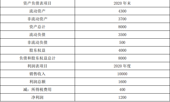 (1)甲公司 2020 年的主要财务报表数据: (单位:万元)