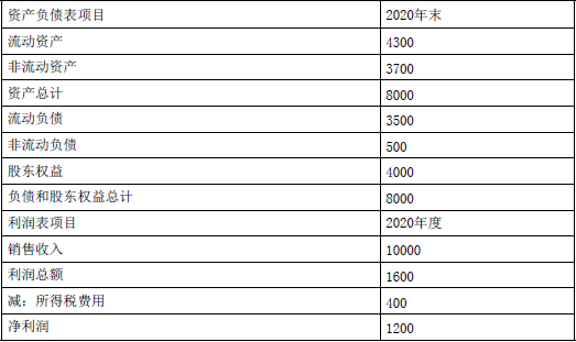 (1)甲公司2020年的主要财务报表数据:(单位:万元)