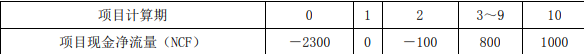 资料一:新生产线的初始投资额为2300万元,建设期2年,项目经营期8年,第2年末垫支营运资金100万元,预计项目期各年现金净流量如表1所示。