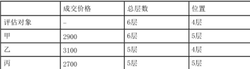 (1)待估对象位于6层中的第4层,可比实例甲,位于6层中第5层;