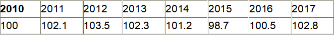 某非标设备2012年建造,历史成本为5.8万元。该类设备建造成本定基物价指数表如下。