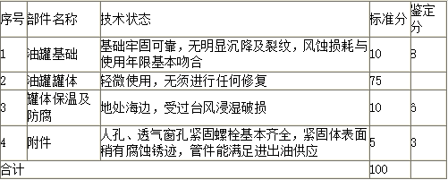 问题4:油罐罐体鉴定分=标准分×(1-贬值率)=75×[1-(10%+15%)/2]=65.625