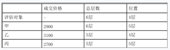 (1)待估对象位于6层中的第4层,可比实例甲,位于6层中第5层;