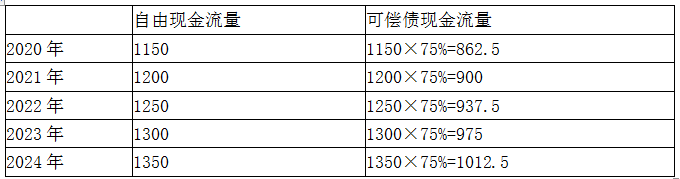 偿债期内某年度企业可用于偿债现金流=该年度自由现金流×偿债系数(75%)
