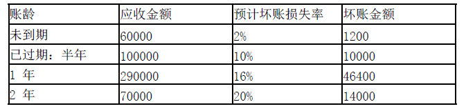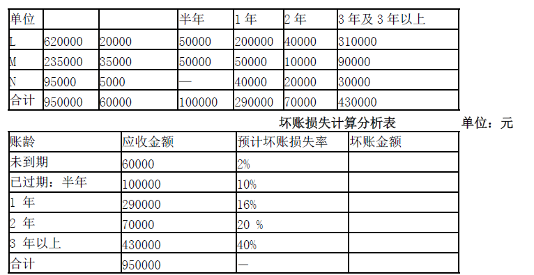 坏账损失计算分析表 单位:元