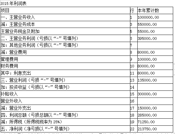 收益调整表 (单位:万元)