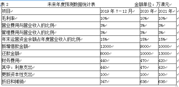 (2)2019年7-12月的净利润=[20725.60×(10%-3%-3%)-440]×(1-30%)=272.32(万澳元)