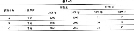 不定项选择题 008~2009年间某超市三种商品的价格和销售量数据如表7—5所示。