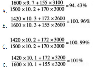 某乡镇2012年社会商品零售额为12000万元,2015年增至15600万元,这四年中物价上涨了4%,则商品销售量指数为( )。