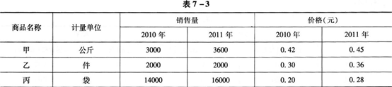 不定项选择题 某商店三种商品销售如表7—3所示。 请根据上述资料,回答86-90题分析该商店2011年比2010年三种商