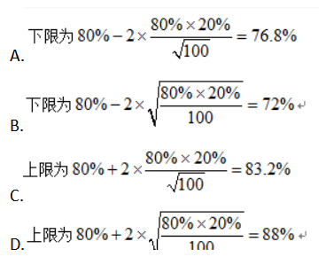 如果研究人员随机抽取100名居民进行调查,调查结果显示有80%的居民对公共服务表示满意。那么以95.45%的置信度估计该市居民对公共服务的满意度,其置信区间的( )。