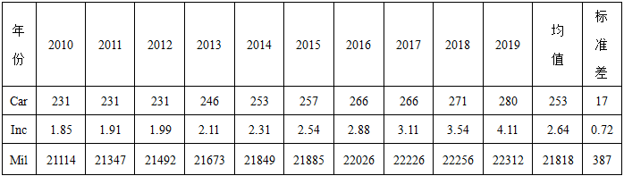 不定项选择题 某城市最近10年的私人汽车拥有总量(Car,单位:万辆)居民人均可支配收入(Inc,单位:万元)和公路总里程(Mil,单位:公里)数据如下表: