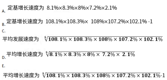 多选题 2016~2020 年我国第三产业增加值的增长率(上年=100)分别为 8.1%、8.3%、8%、7.2%和 2.1%,则 5 期的( )。