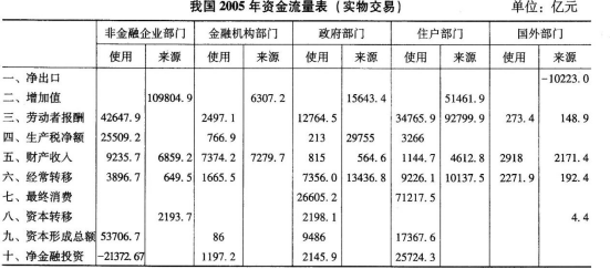 不定项选择题 以下是我国2005年资金流量表(实物交易)部分资料,请根据这些资料对反映该年宏观经济运行的一些重要指标进行计算和分析,回答有关问题。