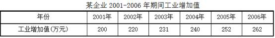 不定项选择题 某企业2001-2006年期间工业增加值资料如下表: 请回答: 该企业2001-2006年期间工业增加值的