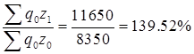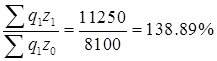 以z表示单位成本,q表示产量,已知Σq1z1=11250,Σq0z1=11650,Σq1z0=8100,Σq0z0=8350。则( )。