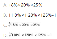 A 5.6%×7.1%×8.5%×6.4% B (105.6%×107.1%×108.5%×106.4%)-100% C (5.6%×7.1%×8.5%×6.4%)+100% D 105.6%×107.1%×108.5%×106.4%
