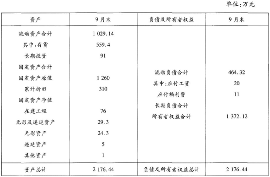 不定项选择题 某建筑公司2017年9月的资产负债简表如下: