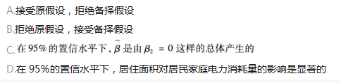 不定项选择题 为预测我国居民家庭对电力的需求量,建立了我国居民家庭电力消耗量(单位:千瓦小时)与可支配收入(X1,单位:百元)、居住面积(X2,单位:平方米)的多元线性回归方程,如下