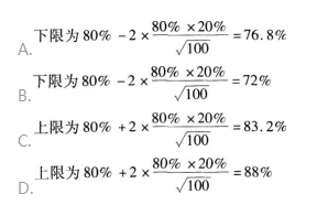 如果研究人员随机抽取100名居民进行调查,调查结果显示有80%的居民对公共服务表示满意。那么以95.45%的置信度估计该市居民对公共服务的满意度,其置信区间的()。